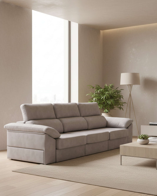 Un sofá amplio, funcional y bien proporcionado, pensado para disfrutarlo a diario con total comodidad.